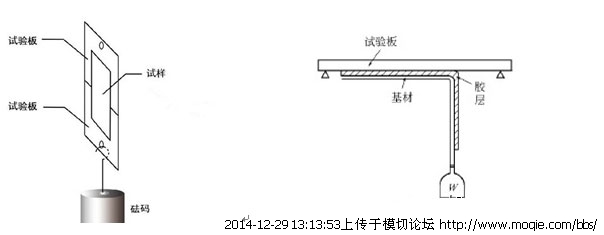 a:剪切持黏力測試方法示意 b:90°剝離持黏力測試方法示意